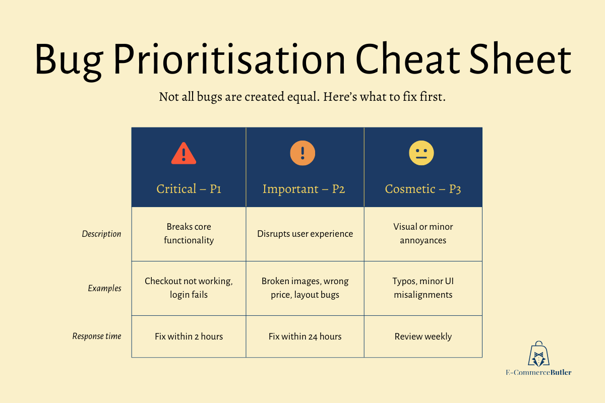 To avoid panicked guesswork, set up a basic triage system before launch day. Here’s a simple way to prioritise: